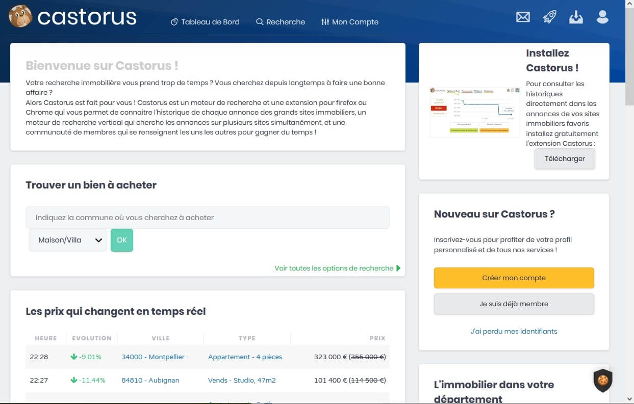 Castorus est une extension de navigateur web et une plateforme en ligne qui permet de suivre l’évolution des annonces immobilières en France. Son principe est simple mais redoutablement efficace : collecter et afficher l’historique complet des prix et des modifications d’une annonce depuis sa première publication.