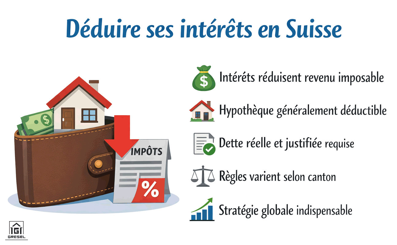 Peut-on réellement alléger sa charge fiscale sans recourir à des montages complexes ? En Suisse, la déduction des intérêts peut permettre de réduire le revenu imposable, selon la nature de la dette et le cadre fiscal applicable. Entre intérêts hypothécaires, dettes privées et règles cantonales, ce mécanisme s’inscrit dans une logique patrimoniale et fiscale précise.