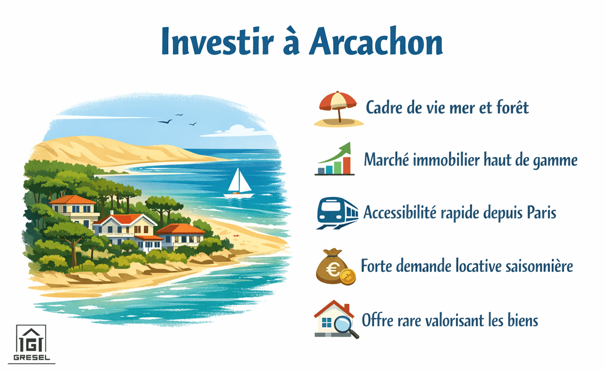 Cette vitalité soutient directement le marché immobilier. Elle alimente la demande locative, favorise les projets d’installation et contribue à maintenir l’intérêt des acquéreurs sur le long terme. Pour un investisseur, cela signifie qu’Arcachon ne s’appuie pas seulement sur la saison estivale, mais sur une attractivité plus large et plus durable.